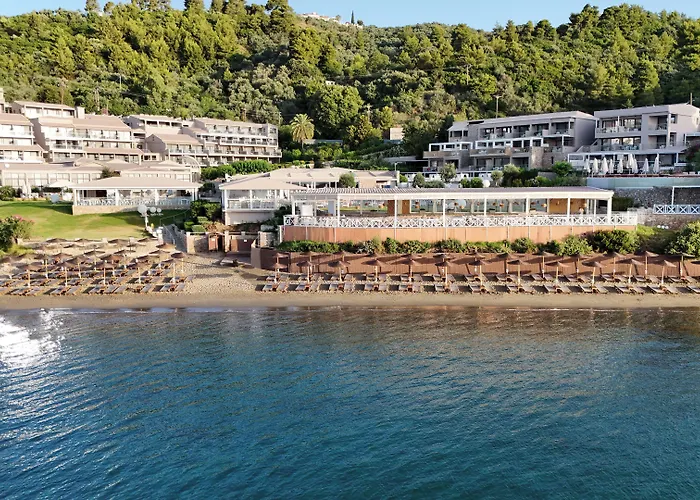 L'hotel offre una posizione sulla spiaggia in prossimità della Spiaggia di Vassilias. La spiaggia sabbiosa con un bar sulla spiaggia ha un accesso diretto a circa 1 km. Gli amanti della natura apprezzeranno la vicinanza a Mar Egeo, che si trova a 30 metri. La Casa di Papadiamantis è situato a una distanza di 2 km dal Kassandra Bay Resort, Suites & Spa. Questo alloggio è a due passi dalla fermata dell'autobus 8 Vasilias.